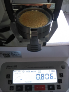 第一次測(cè)量,測(cè)試時(shí)間10分06秒,溫度105℃,水分0.806%