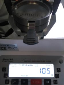 第二步設(shè)定下溫度。就設(shè)定105℃,溫度太高會(huì)把雞精烤化。溫度太低會(huì)影響雞精的測(cè)量時(shí)間。