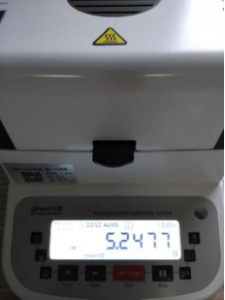 第二次測(cè)量,測(cè)試時(shí)間9分57秒,溫度105℃,水分0.814%