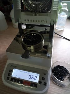 樹脂顆粒應(yīng)足夠小,這樣更能保證樹脂中的水分的完全烘干,并盡量均勻平鋪在托盤上,不要簡單地堆疊在一塊兒。