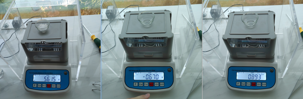 2、密度計在稱重過程中,請勿再碰觸儀器,震動工作臺,避免數(shù)值一直跳動不穩(wěn)定。